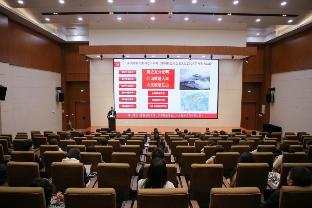 12月1日下午,校党委委员、副校长曹建明来我院宣讲党的二十大精神,学院全体党员、师生代表参加宣讲会。