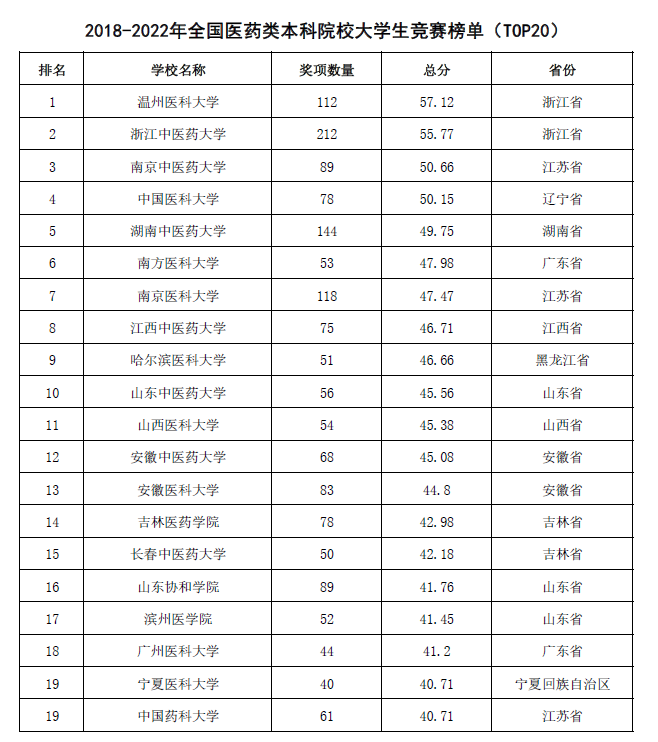 3月22日,中国高等教育学会高校竞赛评估与管理体系研究专家工作组发布《2022全国普通高校大学生竞赛分析报告》,酒店偷拍 在全国医药类本科院校大学生竞赛排行榜中连续四年排名第一。