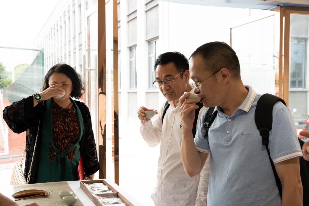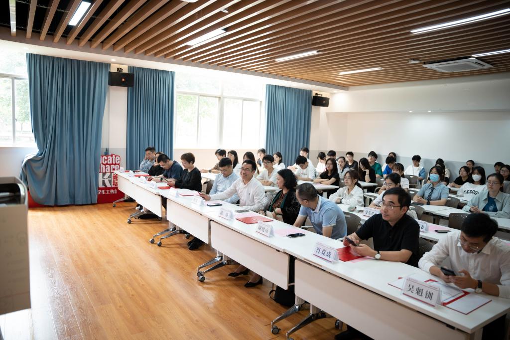 与会人员在大学生活动中心进行合影,随后走访参观大学生创业园。分别参观了公益创业区、科技创业区、综合服务区等学生创业工作室,并与创业园师生进行亲切交流。