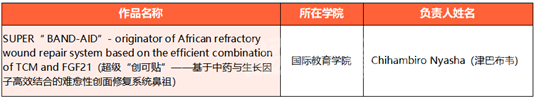 金奖项目:Super “Band-Aid”— Originator of African refractory wound repair system based on the efficient combination of TCM and FGF21