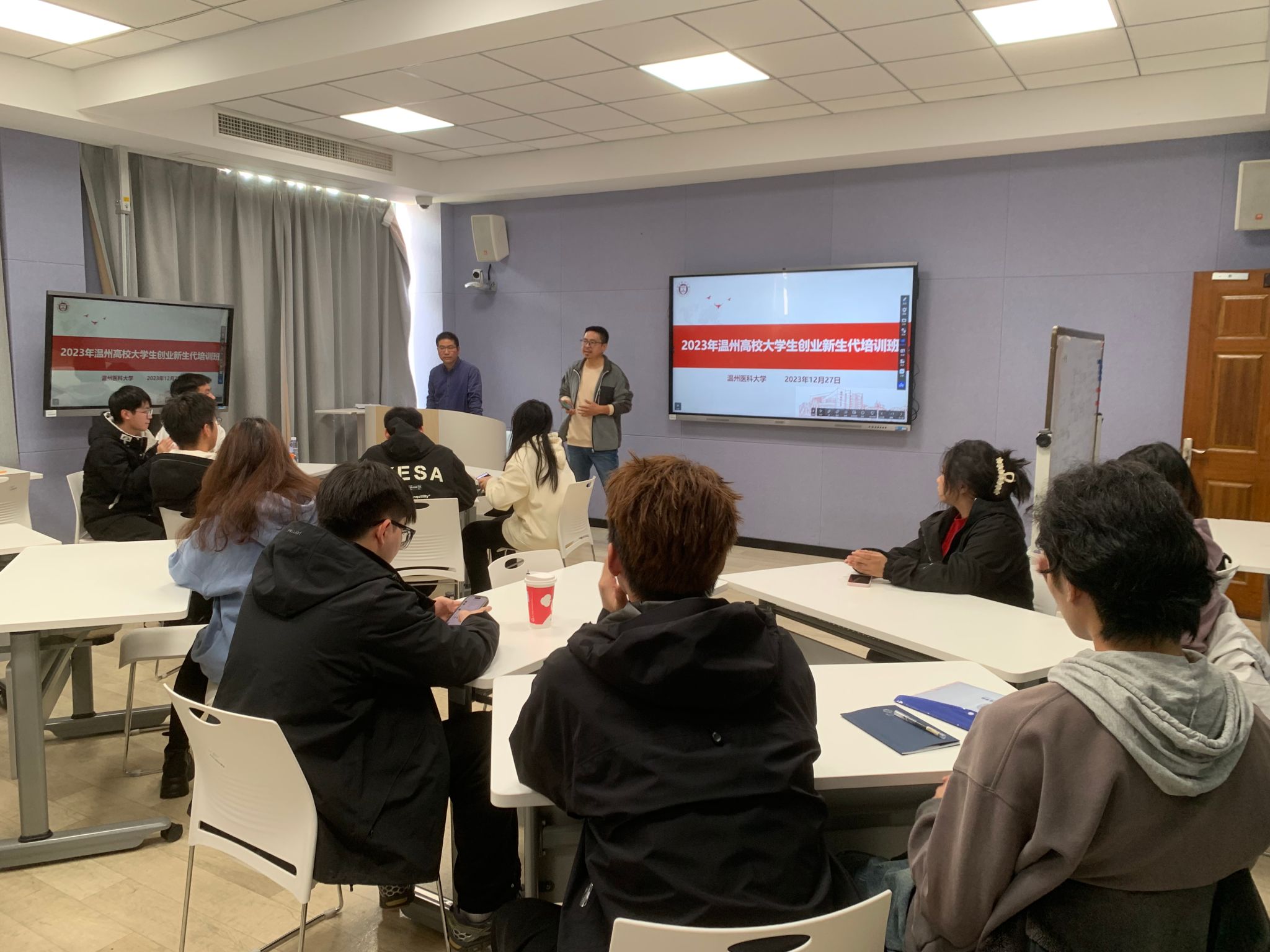 12月27日,由酒店偷拍 开展第三次理论培训课程。酒店偷拍 叶盛老师进行了大学生创新创业理论与实践分享,助力培养优秀的创业新生企业接班人。