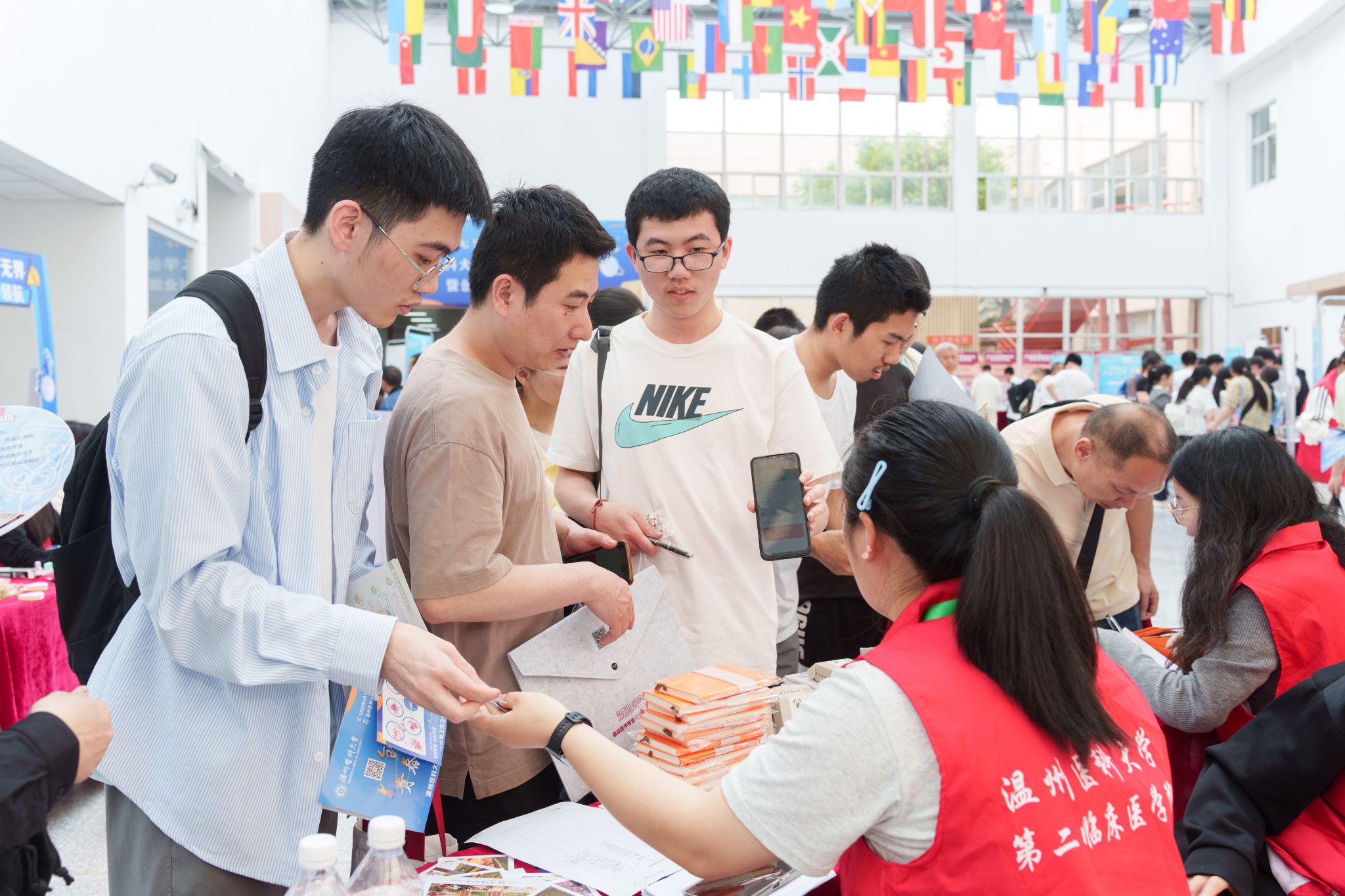 在创业园游园会现场,特色互动游戏和问答环节就像一个个神秘的“魔法盒子”,每打开一个都能收获惊喜。在完成任务过程中,考生和家长积极参与巴氏刷牙法实践、心肺复苏急救演练、眼球模型组装等活动,在实践体验中学习医学知识与技能。工作人员和志愿者全程热情服务,为考生发放活动券和投票卡,并引导他们参与集章活动。抽奖区奖品丰富多样,涵盖精致文具套盒、文创药皂、温医明信片等,每一份奖品都寄托着对参与者的美好祝福。此外,考生和家长还能化身“梦想投票官”,为心仪的学院展位投出宝贵一票。来自温州瑞安的李同学在接受采访时兴奋地表示:“温医大创新创业成果丰硕,创业园游园会的各项活动趣味性十足!我早上还幸运抽中一等奖,希望下午的考试也能顺顺利利。”