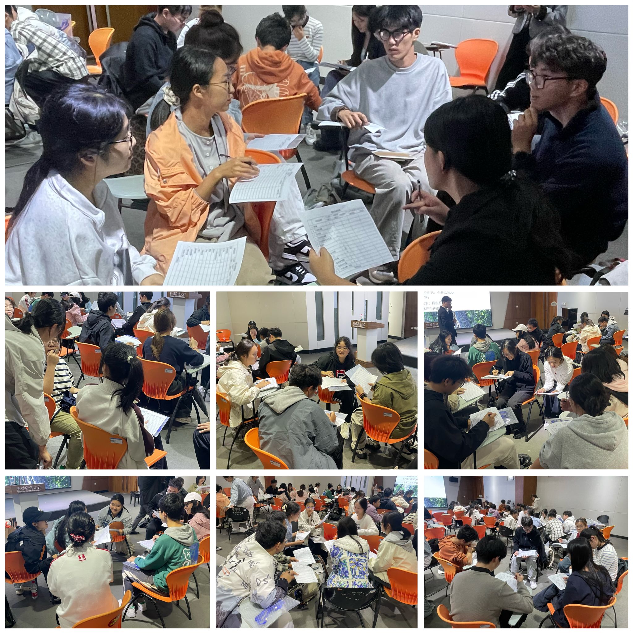 在理论授课的基础上,课程特别设置“头脑风暴”和“迷失丛林”等互动环节。学员们迅速组建7支创业团队,在模拟场景中展开激烈讨论,将所学理论充分运用到实践中。不同专业背景的学员各抒己见、畅所欲言,多元思维在碰撞中迸发诸多创意火花,学员们深刻感受到团队协作与创新实践的无限可能。