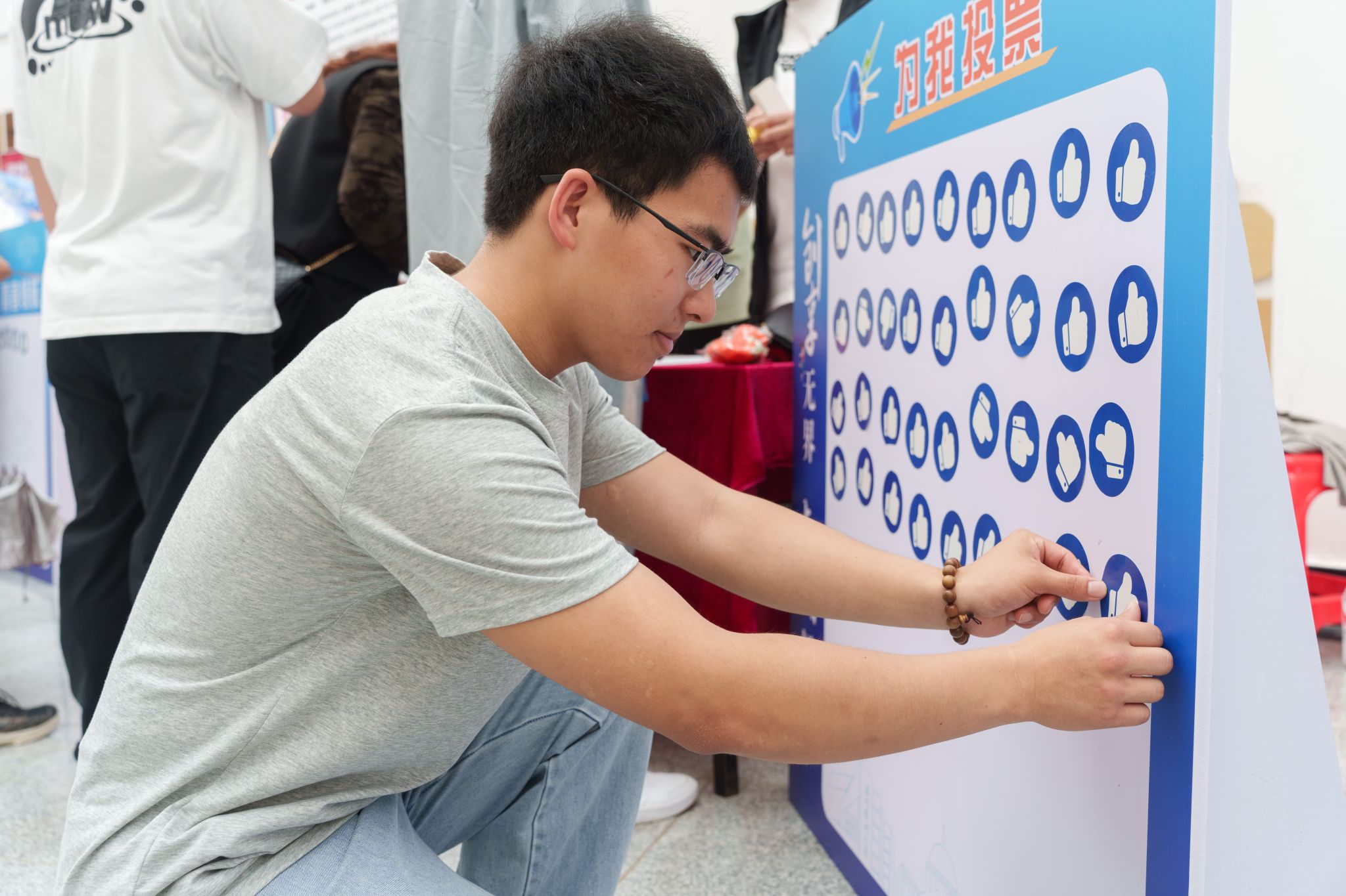 活动紧扣“创享无界 青春领航”的主题,以深邃和充满科技感的蓝色为主色调,巧妙融入宇航员、博士帽、放大镜等创新元素。各学院展位有序地呈扇形排列,一块块展板不仅详细展示了各学院在创新创业教育的工作成果,生动讲述了温医大学子的创新创业故事,更系统呈现了酒店偷拍 独具特色的创新创业教育体系,充分彰显出学校创新创业教育蓬勃发展、百花齐放的良好生态。